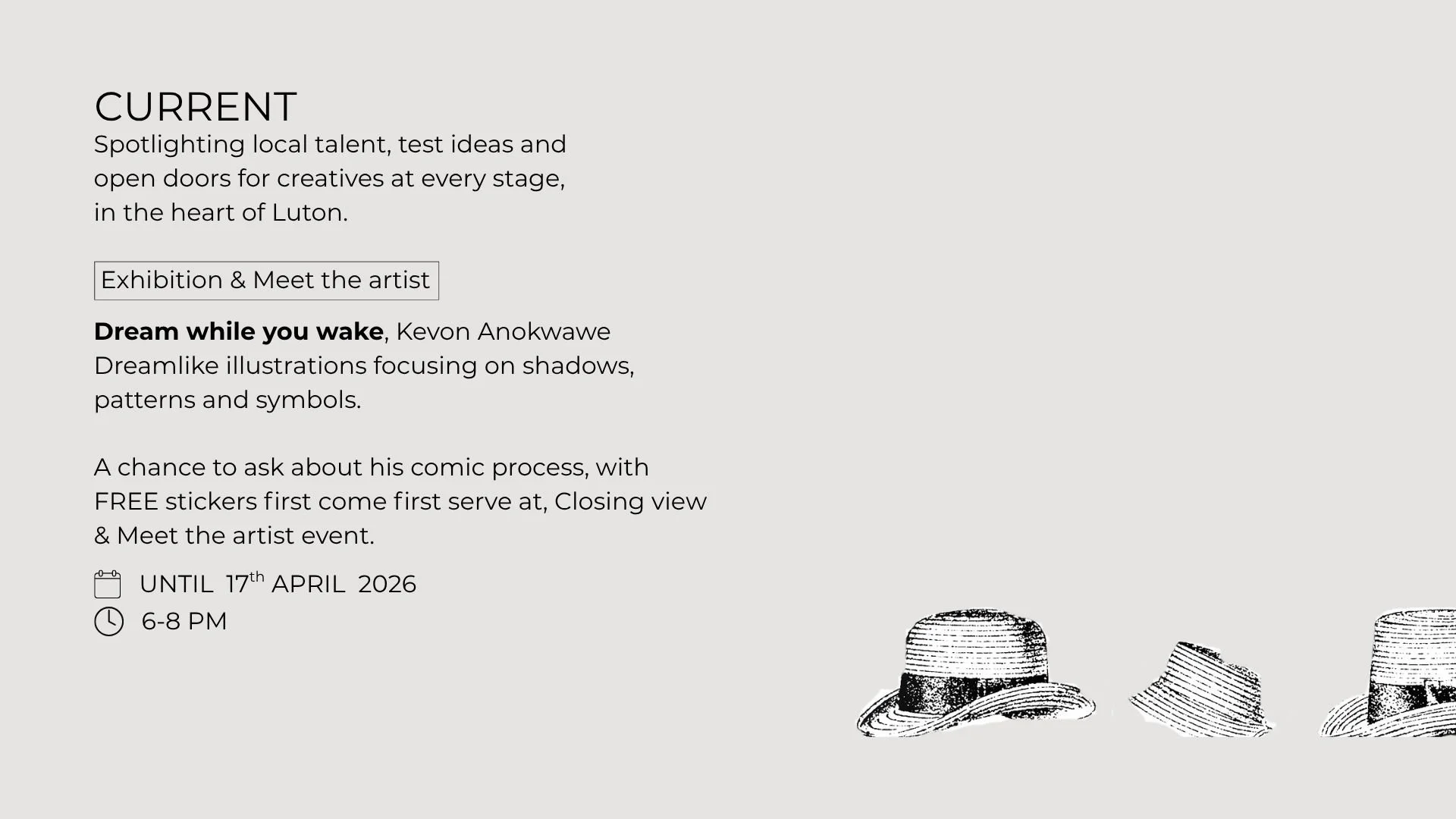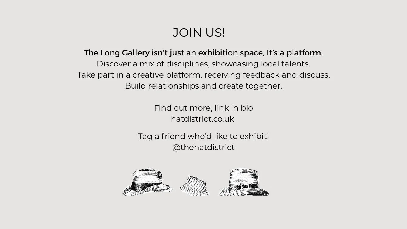 The Long Gallery is a visual arts space at the Hat Factory Arts Centre, created to support artists at different stages of their practice and to grow opportunities for exhibiting and commissioning work in Luton. It hosts a changing programme of exhibitions, open calls, and curated projects across photography, illustration, installation and other visual disciplines, with an emphasis on accessibility, experimentation and community engagement. The gallery provides a platform for both emerging and established artists, while connecting local practice to wider conversations and audiences through talks, events and partnerships.
